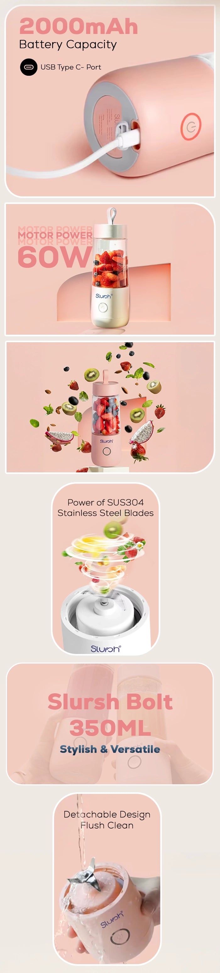 Following is a list of what you get when you order Slursh Bolt 350 ML USB Portable Blender