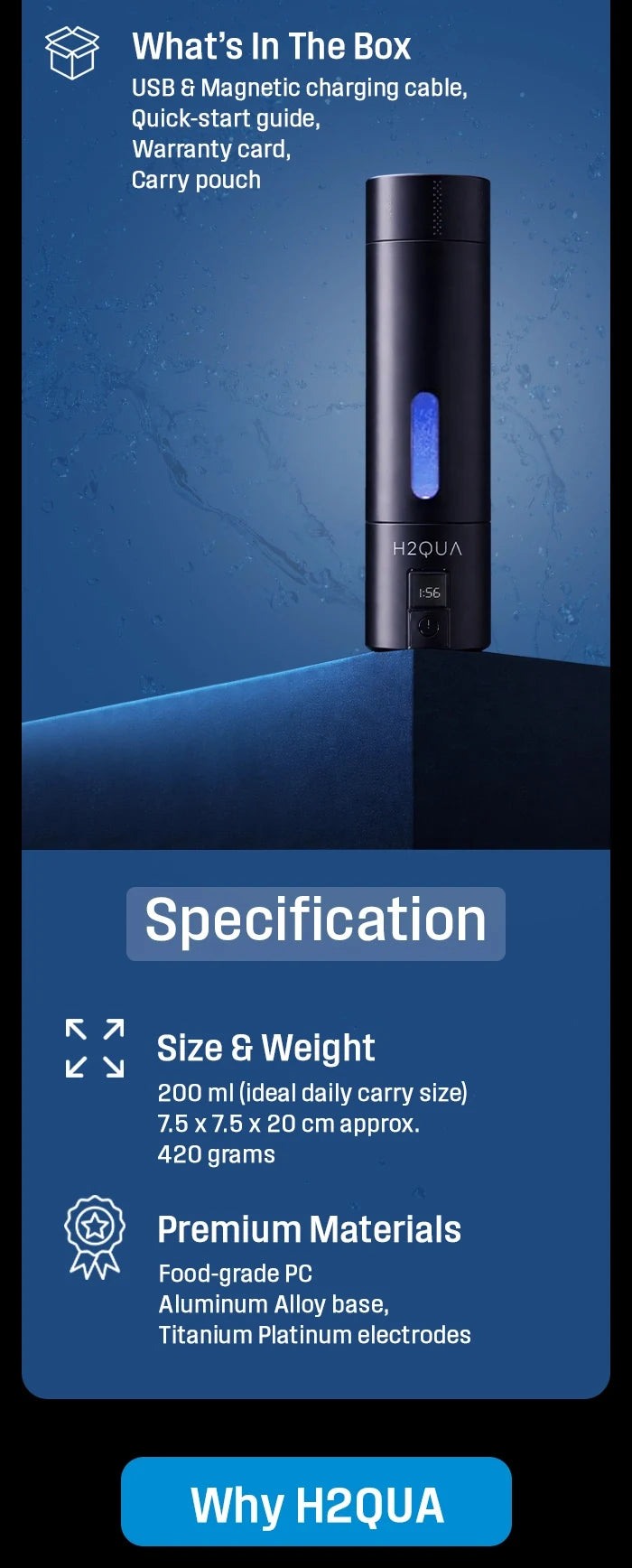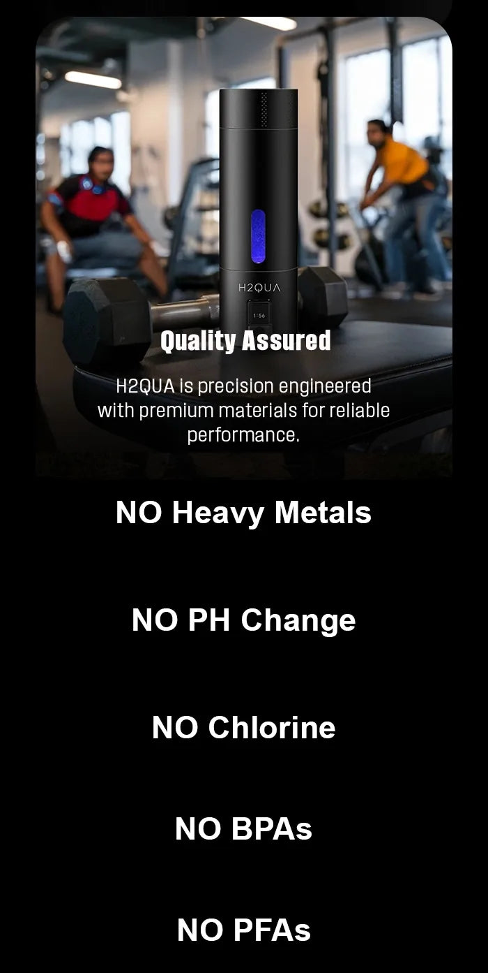 It uses food-grade materials, certified components, and safe electrolysis technology.