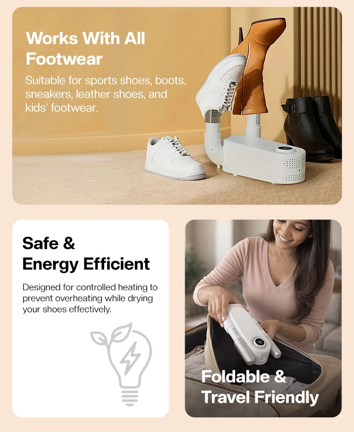 Yes, it uses controlled, low-temperature heat that’s safe for leather formals, sports shoes, and kids' shoes.