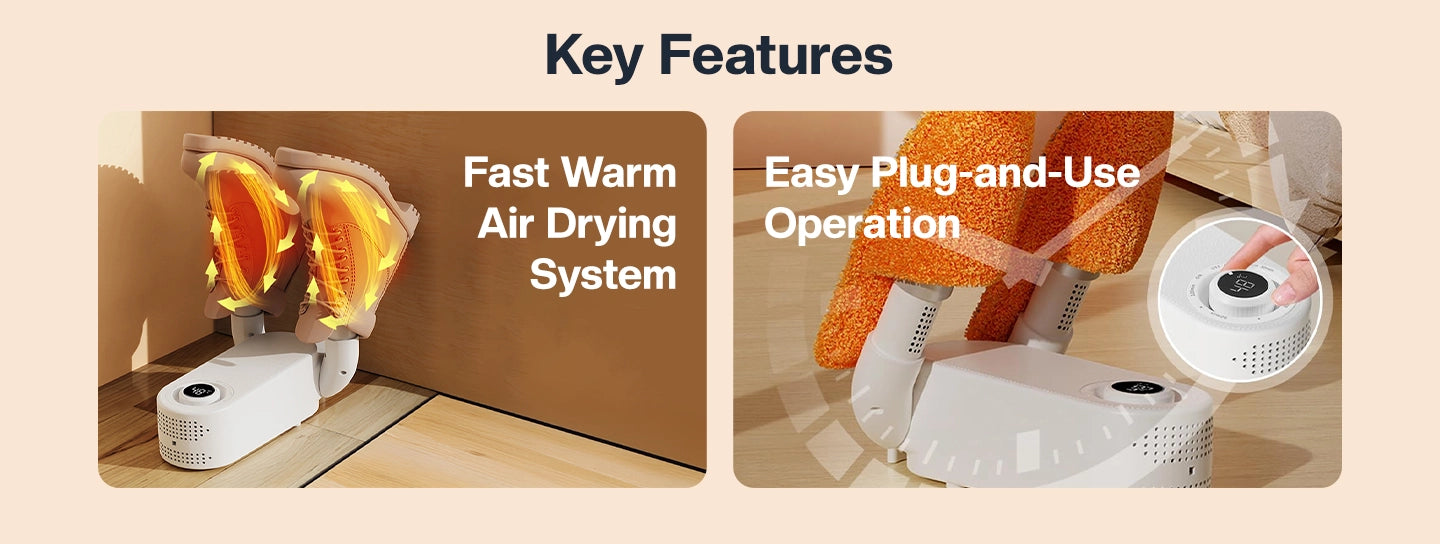 It warms up shoes to prevent frostbite and discomfort from cold, damp footwear.